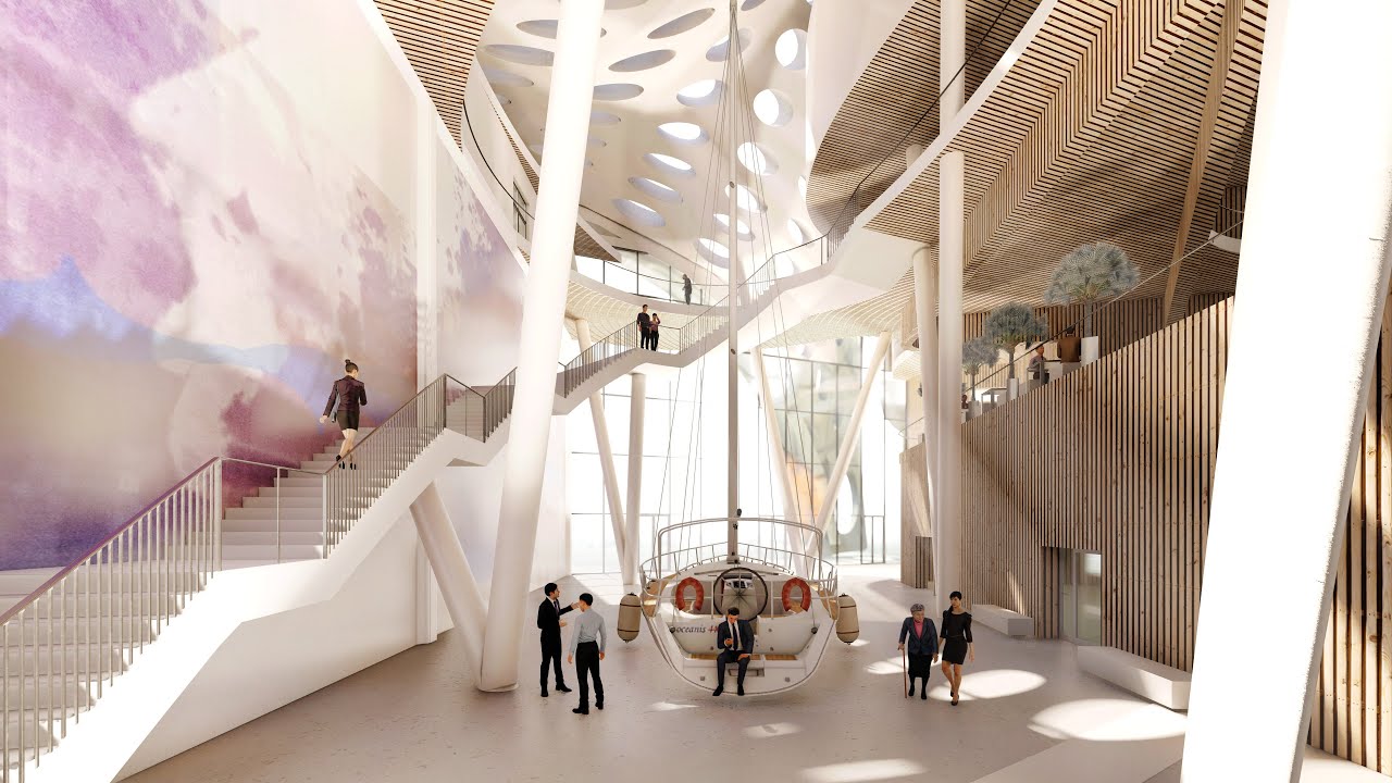 Ein Film über den Entwurf eines Business Centers mit Werft, Büros und Geschäften auf einem Gelände am Hafen in der südkoreanischen Großstadt Busan: Formen aus dem Meer lieferten die Inspiration für den Entwurf. So erinnert das Gebäude mit der geschwungenen Außenhülle an eine am Strand liegende Muschel. Unter der Gebäudehülle stapeln sich einzelne Bereiche wie Container – in Anlehnung an den benachbarten Containerhafen.