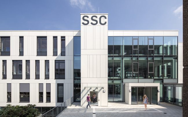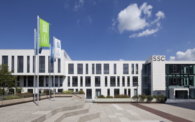 Die Ruhr-Universität Bochum plante die Errichtung eines viergeschossigen Studierenden-Service-Centers (SSC) mit integriertem geisteswissenschaftlichen Schüler-Labor (GSL). Das SSC/GSL gliedert sich in drei große Nutzungseinheiten. Der Nutzungsbereich SSC erstreckt sich über drei Geschosse und beinhaltet Service-Einrichtungen mit Vortragsräumen für Studierende sowie Institutserfordernisse. Im obersten Geschoss befindet sich der Nutzungsbereich GSL mit Vortrags- und Seminar- sowie Schulungsräumen der Institute. Auf der untersten Ebene sind Technikflächen und ein eigener Seminarbereich mit zugeordnetem Copy-Center untergebracht.