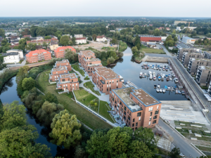 Das Wohnquartier an der Aller zeichnet sich durch seine zentrale Lage aus und berücksichtigt die besonderen Gegebenheiten des Hafens in seinem städtebaulichen Konzept. Es entstand ein Ensemble aus sechs Gebäuden mit 77 Wohneinheiten und einer gemeinsamen Tiefgarage mit 87 Stellplätzen. Das Gesamtprojekt wurde barrierefrei gestaltet und umfasst zusätzlich acht Wohnungen für eine uneingeschränkte Rollstuhlnutzung.
